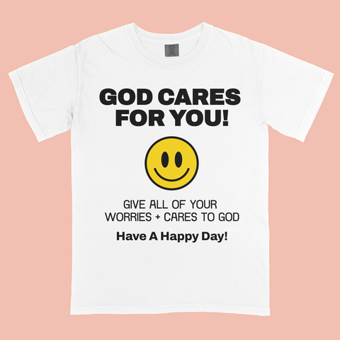 Inspired by 1 Peter 5:7, this design reflects the invitation to bring every worry, fear, and burden before the Lord, trusting in His deep care for us.